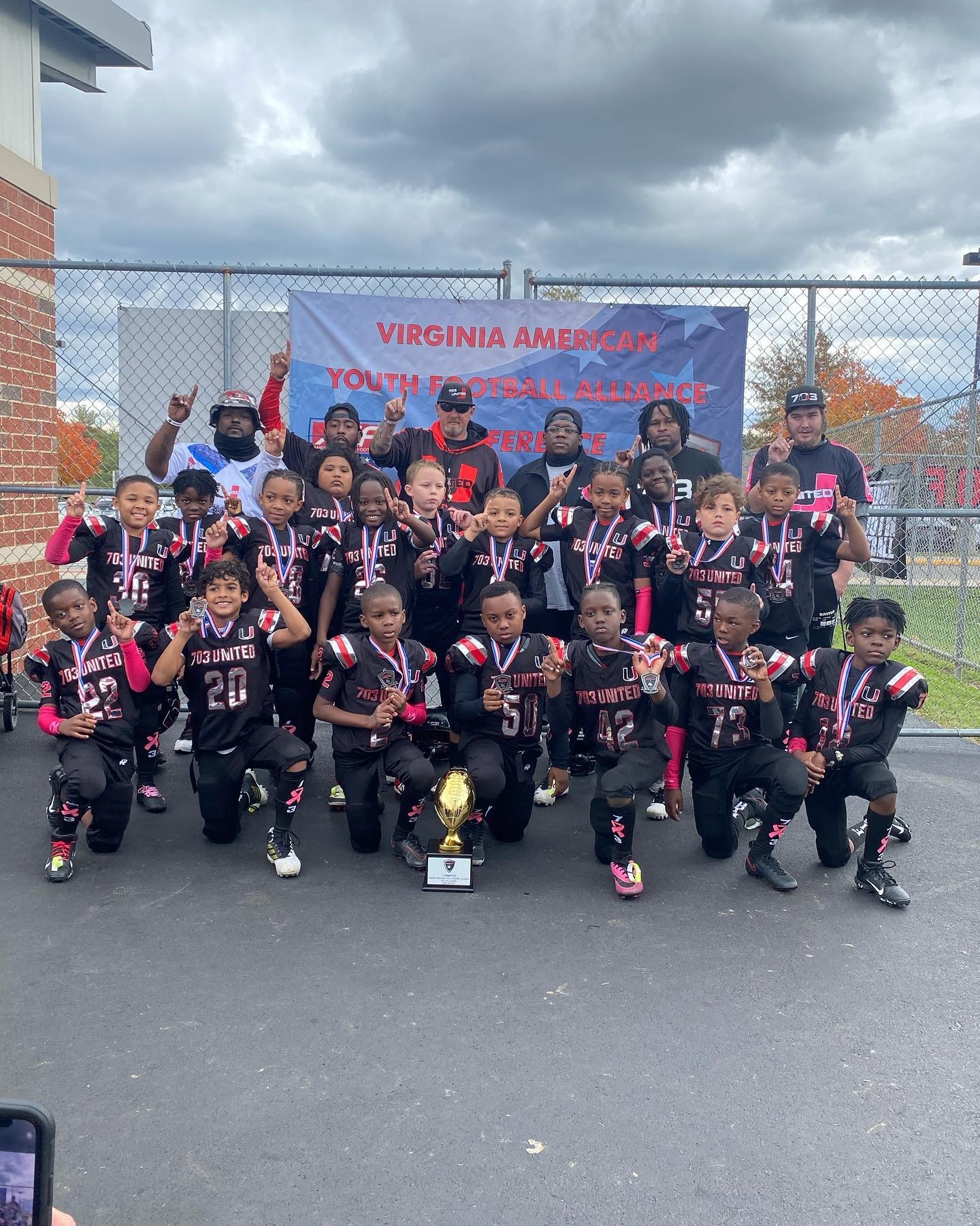The 703 United Youth Sports Football Program is a non-profit 501(c)(3) organization committed to developing football, flag football, and cheerleading skills for children aged 4 to 14. Emphasizing sportsmanship, safety, positive competition, and fun, the program nurtures youth athletes' growth both on and off the field. As a member of the Virginia American Youth Football Alliance and affiliated with American Youth Football (AYF), 703 United provides a platform for young athletes to excel and build a strong foundation for their future.